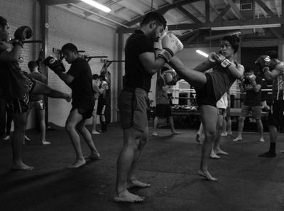 In Muay Thai Training. This class will show you the basics of movement. Learn to deliver effective strikes from close range as well as sneaky trips and takedowns.